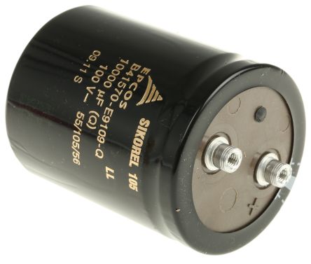 EPCOS 10000μF 100V dc Aluminium Electrolytic Capacitor, Chassis Mount 64.3 (Dia.) x 80.7mm +105°C 64.3mm [B41570E9109Q000]; 171-1120
