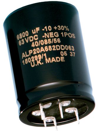 KEMET 10000μF 40V dc Aluminium Electrolytic Capacitor, Through Hole 40 x 55mm +85°C 40mm 55mm [ALP20A1004DD]; 173-5107