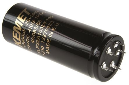 KEMET 10000μF 100V dc Aluminium Electrolytic Capacitor, Through Hole 40 x 105mm +85°C 40mm 105mm [ALP22A103DF100]; 227-1232