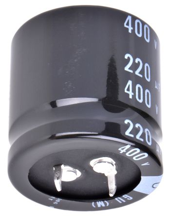 Nichicon 220μF 400V dc Aluminium Electrolytic Capacitor, Through Hole 30 (Dia.) x 30mm +105°C 30mm 10mm [LGU2G221MELB]; 844-2847