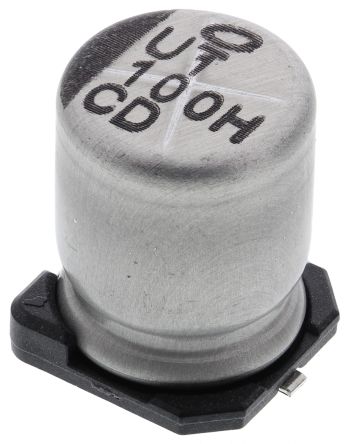 Nichicon 100μF 50V dc Aluminium Electrolytic Capacitor, Surface Mount 8 (Dia.) x 10mm +105°C 8mm [UCD1H101MNL1GS]; 165-3644