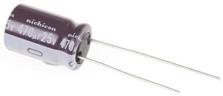 Nichicon 470μF 25V dc Aluminium Electrolytic Capacitor, Through Hole 10 (Dia.) x 16mm +105°C 10mm 5mm [UPS1E471MPD]; 165-3916