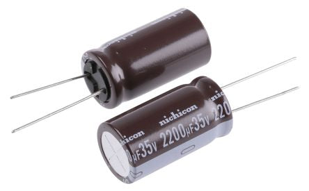 Nichicon 2200μF 35V dc Aluminium Electrolytic Capacitor, Through Hole 16 (Dia.) x 31.5mm +105°C 16mm 7.5mm [UPS1V222MHD]; 519-4217