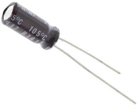 Nichicon 47μF 25V dc Aluminium Electrolytic Capacitor, Through Hole 5 (Dia.) x 11mm +105°C 5mm 2mm [UPW1E470MDD]; 173-3046