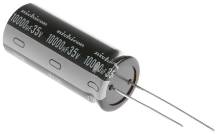Nichicon 10000μF 35V dc Aluminium Electrolytic Capacitor, Through Hole 22 (Dia.) x 50mm +105°C 22mm 10mm [UVY1V103MRD]; 167-7875