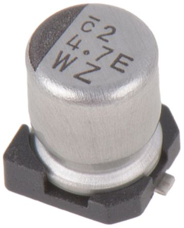 Nichicon 4.7μF 25V dc Aluminium Electrolytic Capacitor, Surface Mount 4 (Dia.) x 5.4mm +105°C 4mm 1mm [UWZ1E4R7MCL1GB]; 167-1304