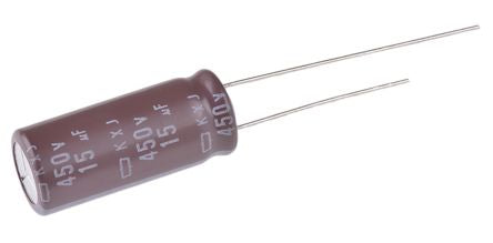 Nippon Chemi-Con 15μF 450V dc Aluminium Electrolytic Capacitor, Through Hole 10 x 25mm +105°C 10mm 5mm [EKXJ451ELL150MJ25S]; 170-0373