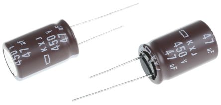 Nippon Chemi-Con 47μF 450V dc Aluminium Electrolytic Capacitor, Through Hole 16 x 25mm +105°C 16mm 7.5mm [EKXJ451ELL470ML25S]; 170-0375