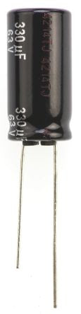 Panasonic 330μF 63V dc Aluminium Electrolytic Capacitor, Through Hole 10 (Dia.) x 20mm +105°C 10mm 5mm [ECA1JHG331]; 365-4385