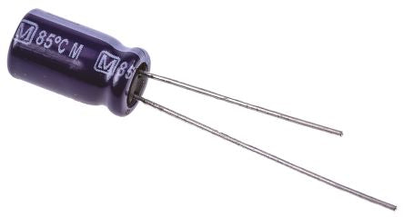 Panasonic 100μF 35V dc Aluminium Electrolytic Capacitor, Through Hole 6.3 (Dia.) x 11.2mm +85°C 6.3mm 2.5mm [ECA1VM101]; 107-8023