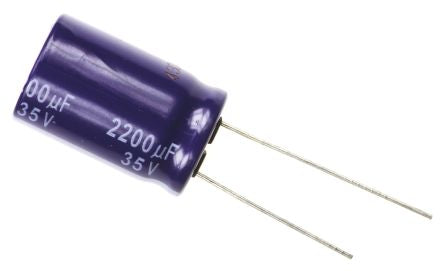 Panasonic 2200μF 35V dc Aluminium Electrolytic Capacitor, Through Hole 16 (Dia.) x 25mm +85°C 16mm 7.5mm [ECA1VM222]; 228-6824