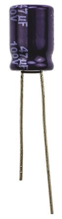 Panasonic 47μF 100V dc Aluminium Electrolytic Capacitor, Through Hole 8 (Dia.) x 11.5mm +85°C 8mm 3.5mm [ECA2AM470]; 107-8149