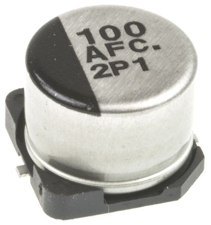 Panasonic 100μF 10V dc Aluminium Electrolytic Capacitor, Surface Mount 8 (Dia.) x 6.2mm +105°C 8mm 2.2mm [EEEFC1A101P]; 537-0102