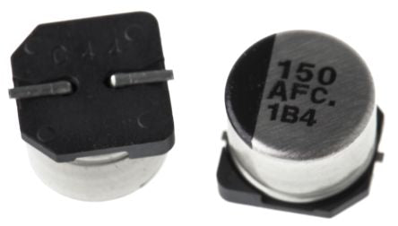 Panasonic 150μF 10V dc Aluminium Electrolytic Capacitor, Surface Mount 8 (Dia.) x 6.2mm +105°C 8mm 2.2mm [EEEFC1A151P]; 747-8728