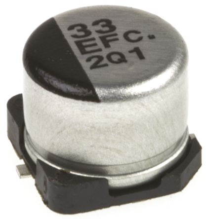 Panasonic 33μF 25V dc Aluminium Electrolytic Capacitor, Surface Mount 6.3 (Dia.) x 5.4mm +105°C 6.3mm 1.8mm [EEEFC1E330P]; 537-0219
