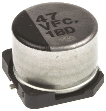Panasonic 47μF 35V dc Aluminium Electrolytic Capacitor, Surface Mount 8 (Dia.) x 6.2mm +105°C 8mm 2.2mm [EEEFC1V470P]; 537-0398