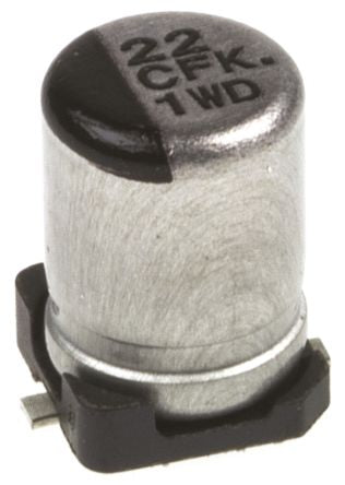 Panasonic 22μF 16V dc Aluminium Electrolytic Capacitor, Surface Mount 4 (Dia.) x 5.8mm +105°C 4mm 1mm [EEEFK1C220UR]; 537-0449
