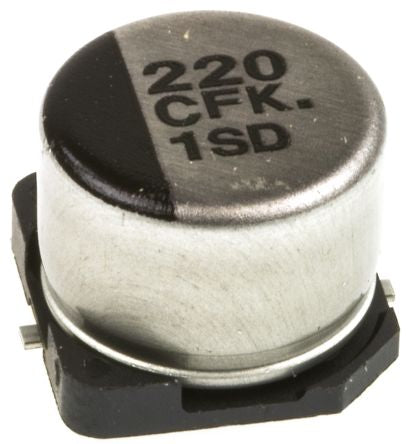 Panasonic 220μF 16V dc Aluminium Electrolytic Capacitor, Surface Mount 8 (Dia.) x 6.2mm +105°C 8mm 2.2mm [EEEFK1C221AP]; 919-0685