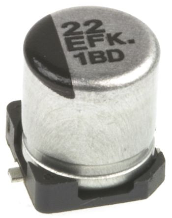 Panasonic 22μF 25V dc Aluminium Electrolytic Capacitor, Surface Mount 5 (Dia.) x 5.8mm +105°C 5mm [EEEFK1E220R]; 708-3403