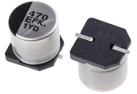 Panasonic 470μF 25V dc Aluminium Electrolytic Capacitor, Surface Mount 10 (Dia.) x 10.2mm +105°C 10mm [EEEFK1E471AP]; 565-752