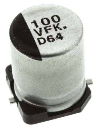 Panasonic 100μF 35V dc Aluminium Electrolytic Capacitor, Surface Mount 8 (Dia.) x 10.2mm +105°C 8mm [EEEFK1V101AP]; 565-605