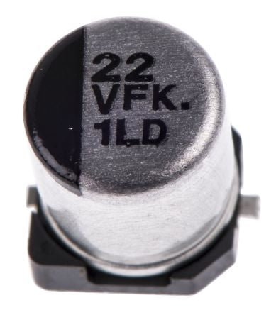 Panasonic 22μF 35V dc Aluminium Electrolytic Capacitor, Surface Mount 5 (Dia.) x 5.8mm +105°C 5mm 1.5mm [EEEFK1V220R]; 537-0629