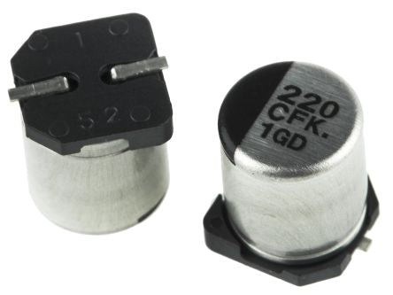 Panasonic 220μF 16V dc Aluminium Electrolytic Capacitor, Surface Mount 6.3 (Dia.) x 7.7mm +105°C 6.3mm 1.8mm [EEEFKC221XAP]; 747-8930
