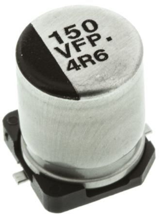 Panasonic 150μF 35V dc Aluminium Electrolytic Capacitor, Surface Mount 8 (Dia.) x 10.2mm +105°C 8mm [EEEFP1V151AP]; 568-903