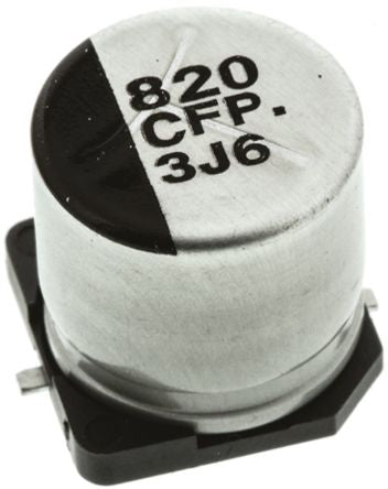 Panasonic 820μF 16V dc Aluminium Electrolytic Capacitor, Surface Mount 10 (Dia.) x 10.2mm +105°C 10mm [EEEFPC821UAP]; 568-795