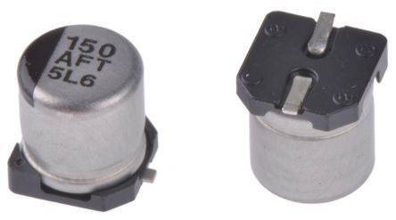 Panasonic 150μF 10V dc Aluminium Electrolytic Capacitor, Surface Mount 5 (Dia.) x 5.8mm +105°C 5mm 1.5mm [EEEFT1A151AR]; 103-4758