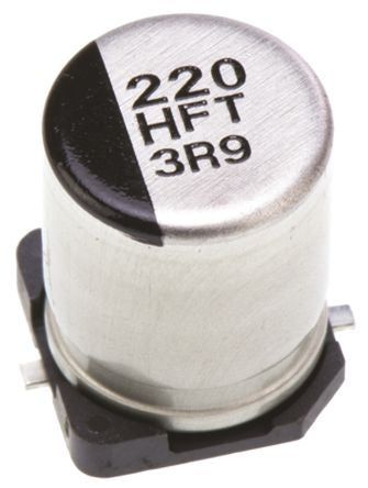 Panasonic 220μF 50V dc Aluminium Electrolytic Capacitor, Surface Mount 8 (Dia.) x 10.2mm +105°C 8mm 3.1mm [EEEFT1H221AP]; 103-4765