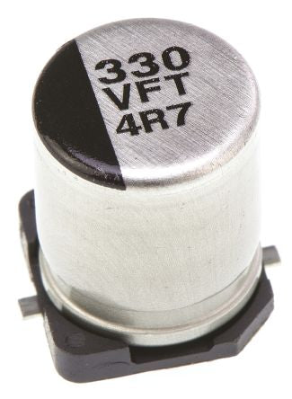 Panasonic 330μF 35V dc Aluminium Electrolytic Capacitor, Surface Mount 8 (Dia.) x 10.2mm +105°C 8mm 3.1mm [EEEFT1V331AP]; 729-6286