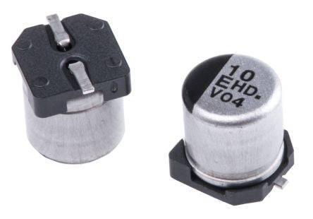 Panasonic 10μF 25V dc Aluminium Electrolytic Capacitor, Surface Mount 5 (Dia.) x 5.8mm +105°C 5mm [EEEHD1E100AR]; 569-293