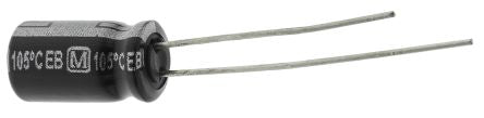 Panasonic 100μF 25V dc Aluminium Electrolytic Capacitor, Through Hole 6.3 (Dia.) x 11.2mm +105°C 6.3mm 2.5mm [EEUEB1E101S]; 747-2067