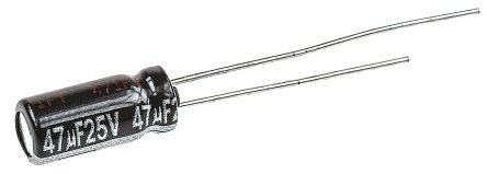 Panasonic 47μF 25V dc Aluminium Electrolytic Capacitor, Through Hole 5 (Dia.) x 11mm +105°C 5mm 2mm [EEUEB1E470S]; 923-2887