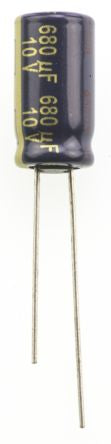 Panasonic 680μF 10V dc Aluminium Electrolytic Capacitor, Through Hole 8 (Dia.) x 15mm +105°C 8mm 3.5mm [EEUFC1A681L]; 920-4854