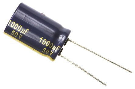 Panasonic 1000μF 50V dc Aluminium Electrolytic Capacitor, Through Hole 16 (Dia.) x 25mm +105°C 16mm 7.5mm [EEUFC1H102]; 315-0906