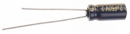 Panasonic 2.2μF 50V dc Aluminium Electrolytic Capacitor, Through Hole 5 (Dia.) x 11mm +105°C 5mm 2mm [EEUFC1H2R2]; 107-3579