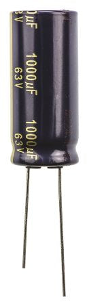 Panasonic 1000μF 63V dc Aluminium Electrolytic Capacitor, Through Hole 16 (Dia.) x 35.5mm +105°C 16mm 7.5mm [EEUFC1J102]; 108-4030