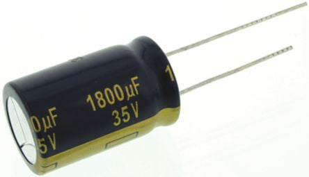 Panasonic 1800μF 35V dc Aluminium Electrolytic Capacitor, Through Hole 16 (Dia.) x 25mm +105°C 16mm 7.5mm [EEUFC1V182]; 108-1341