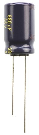 Panasonic 680μF 35V dc Aluminium Electrolytic Capacitor, Through Hole 12.5 (Dia.) x 20mm +105°C 12.5mm 5mm [EEUFC1V681]; 315-0748
