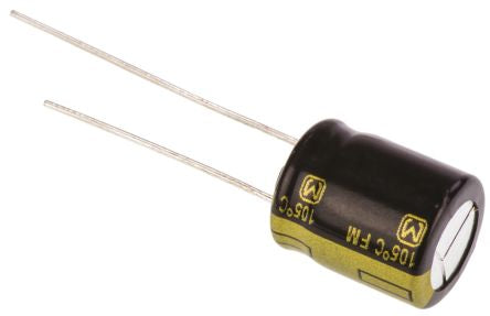 Panasonic 330μF 25V dc Aluminium Electrolytic Capacitor, Through Hole 10 (Dia.) x 12.5mm +105°C 10mm 5mm [EEUFM1E331]; 526-1519