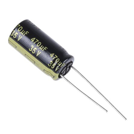 Panasonic 470μF 35V dc Aluminium Electrolytic Capacitor, Through Hole 10 (Dia.) x 20mm +105°C 10mm 5mm [EEUFM1V471]; 526-1884