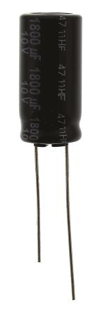 Panasonic 1800μF 10V dc Aluminium Electrolytic Capacitor, Through Hole 10 (Dia.) x 20mm +105°C 10mm 5mm [EEUFR1A182]; 921-3426