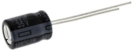 Panasonic 100μF 35V dc Aluminium Electrolytic Capacitor, Through Hole 8 x 11.5mm +105°C 8mm 3.5mm [EEUFR1V101]; 766-0075