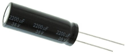 Panasonic 2200μF 35V dc Aluminium Electrolytic Capacitor, Through Hole 12.5 (Dia.) x 35mm +105°C 12.5mm 5mm [EEUFR1V222L]; 739-6831