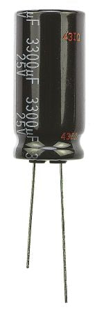 Panasonic 3300μF 25V dc Aluminium Electrolytic Capacitor, Through Hole 12.5 (Dia.) x 25mm +105°C 12.5mm 5mm [EEUHD1E332]; 744-2050