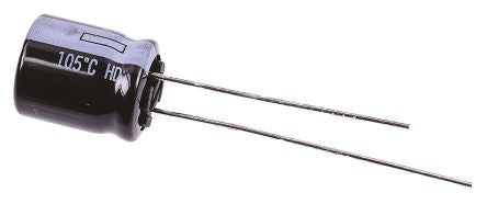 Panasonic 470μF 25V dc Aluminium Electrolytic Capacitor, Through Hole 10 (Dia.) x 12.5mm +105°C 10mm 5mm [EEUHD1E471]; 744-2044