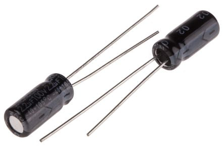 RS PRO 2.2μF 100V dc Aluminium Electrolytic Capacitor, Through Hole 5 (Dia.) x 11mm +105°C 5mm 2mm 11mm; 170-1283