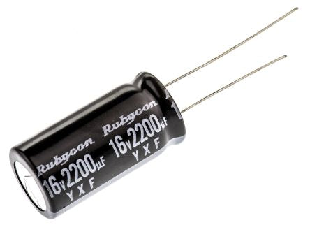 Rubycon 2200μF 16V dc Aluminium Electrolytic Capacitor, Through Hole 12.5 (Dia.) x 25mm +105°C 12.5mm 5mm [16YXF2200M12.5X25]; 172-8005